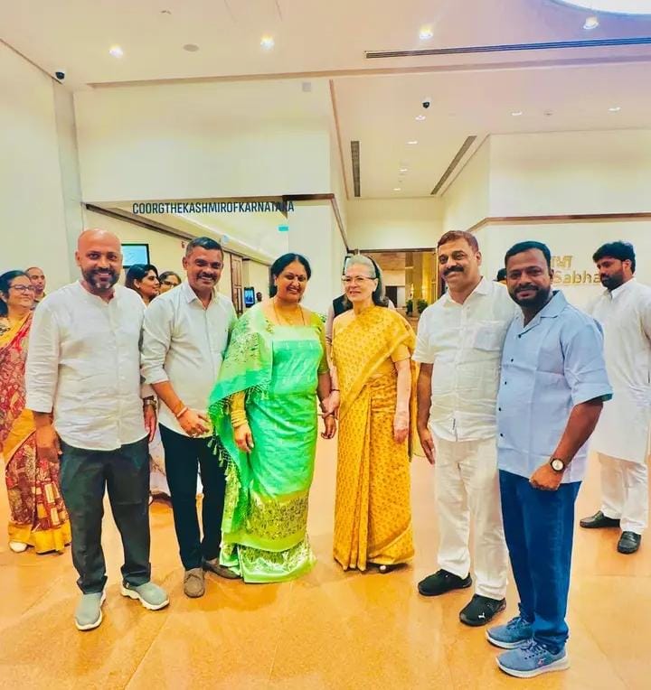 ನವದೆಹಲಿಯಲ್ಲಿಂದು ಕಾಂಗ್ರೆಸ್ ಪಕ್ಷದ ಅಧಿನಾಯಕಿ ಶ್ರೀಮತಿ ಸೋನಿಯಾ ಗಾಂಧಿಯವರನ್ನು ವಿರಾಜಪೇಟೆ ಪುರಸಭೆಯ ಪ್ರಥಮ ಪ್ರಜೆ ಶ್ರೀಮತಿ ಮನೆಯಪಂಡ ದೇಚಮ್ಮ ಕಾಳಪ್ಪ ಅವರ ನೇತೃತ್ವದಲ್ಲಿ ವಿರಾಜಪೇಟೆ ಪುರಸಭೆಯ ಹಿರಿಯ ಸದಸ್ಯರಾದ ಮತೀನ್ ಎಸ್ ಹೆಚ್, ರಾಜೇಶ್ ಪದ್ಮನಾಭ, ಮಹಮ್ಮದ್ ರಾಫಿ, ಬೆನ್ನಿ ಆಗಸ್ಟಿನ್ ಅವರು ಭೇಟಿಯಾದರು.